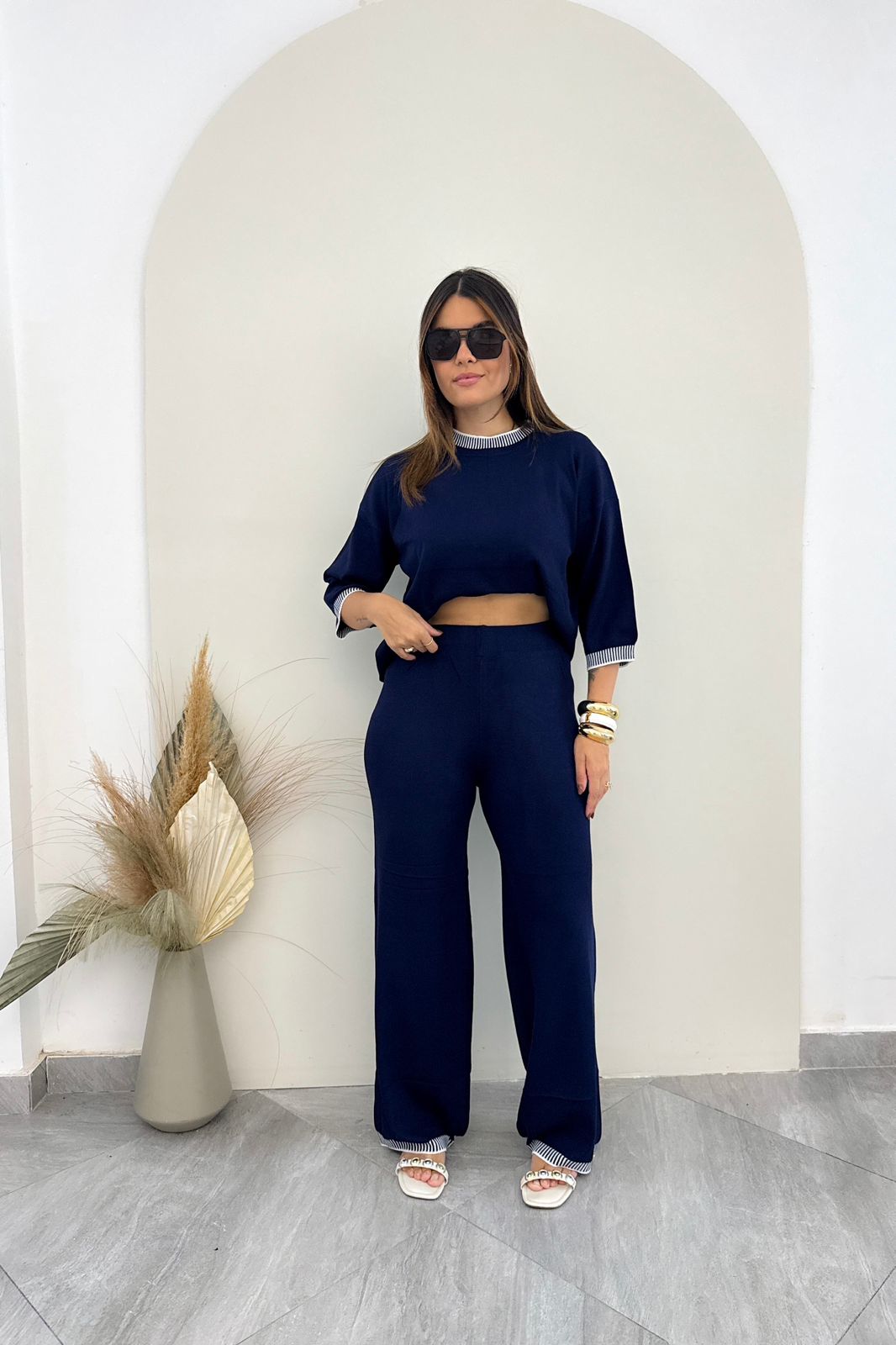 A calça apresenta modelagem reta e cintura confortável, proporcionando ajuste perfeito e liberdade de movimento. Confeccionado em tricô modal macio e de alta qualidade, o conjunto é perfeito para compor looks estilosos e versáteis, podendo ser usado tanto em produções casuais quanto em ocasiões mais elegantes.